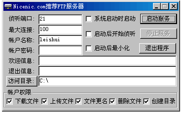 在设置好端口、用户名、密码、路径、权限后,点击“启动服务”,那么你就拥有一台你自己的